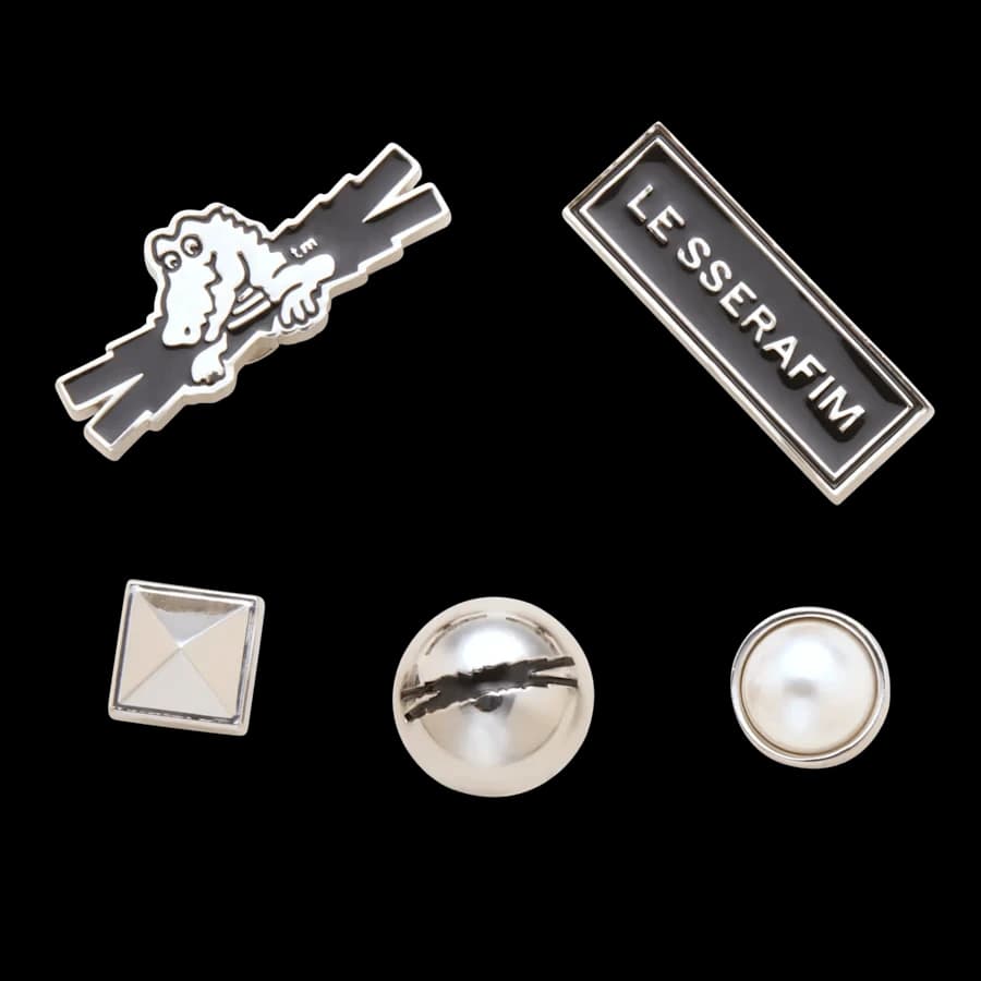 Fans can also look forward to a limited-edition 5-pack of official Jibbitz charms, designed around LE SSERAFIM’s aesthetic. The pack includes pearls, studs, and logo motifs that echo the group’s signature mix of elegance and edge. Together, they form a cohesive visual statement that feels both daring and distinctly wearable.